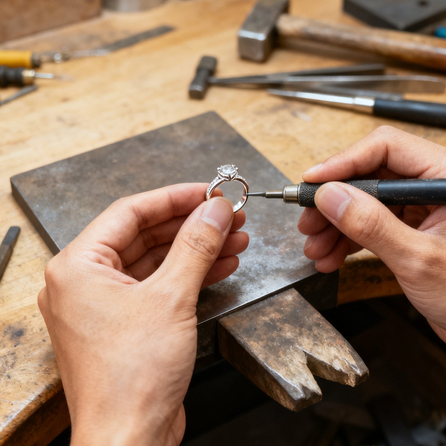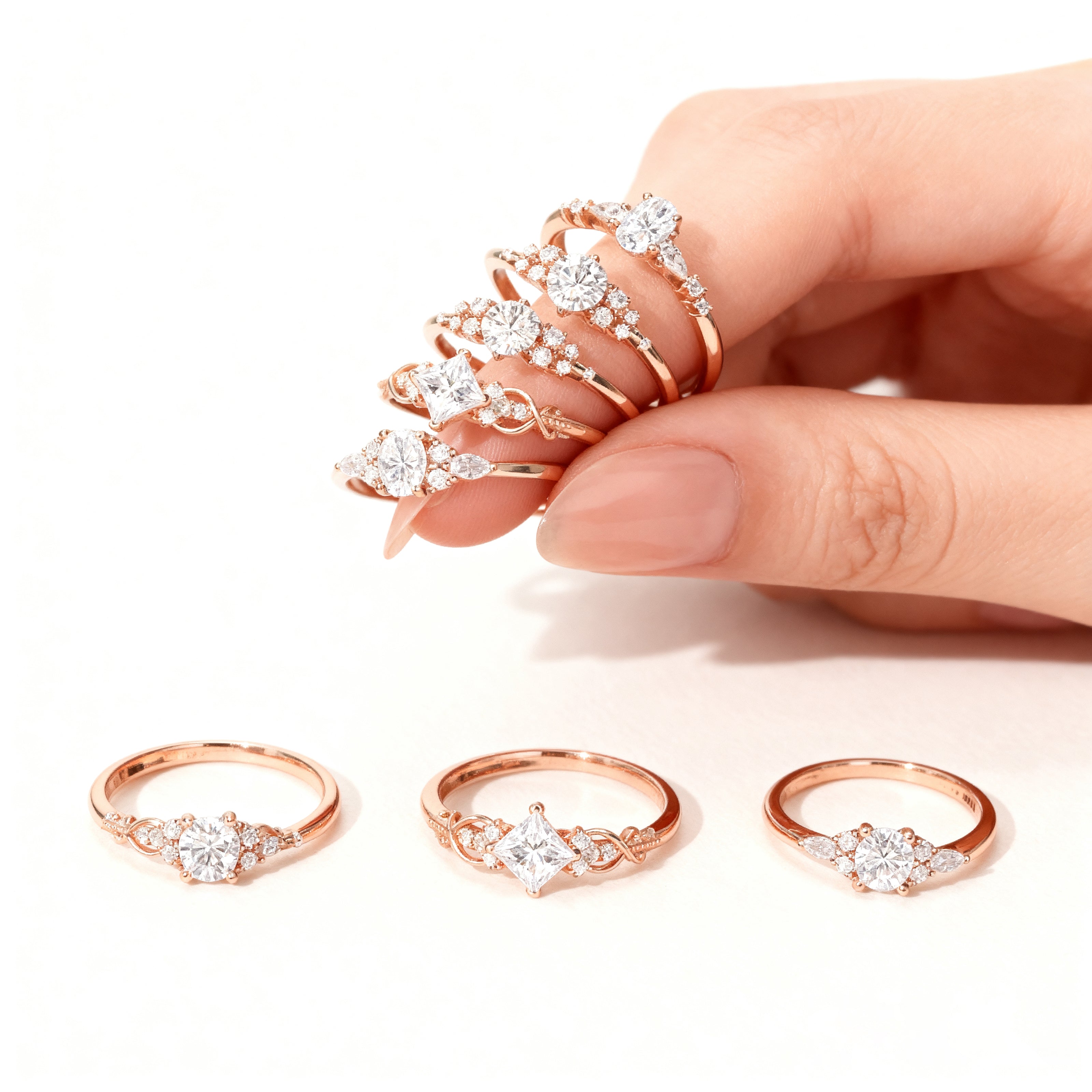 We offer pure silver, gold-plated, and 10k/14K/18K gold as options for your engagement ring. Each metal has its own unique appeal, and we'll help you choose the best one to suit your partner’s style.