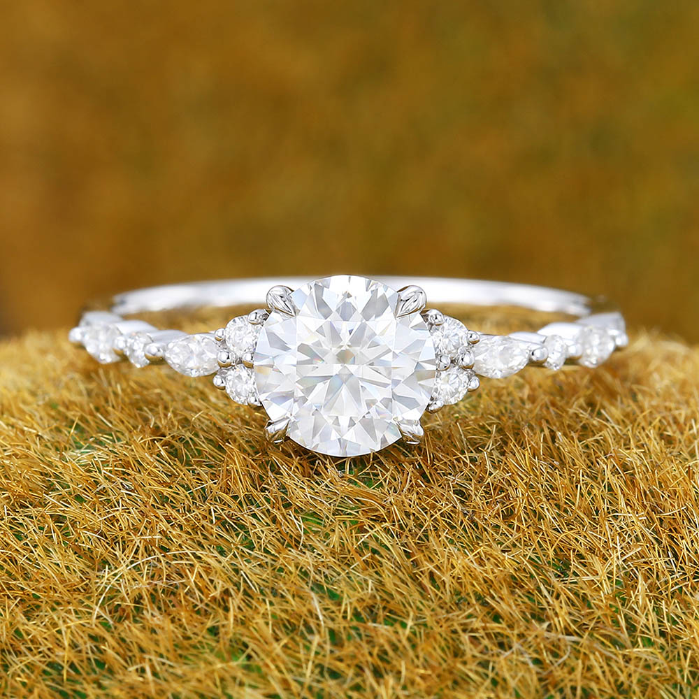 Marquise Cut Moissanite Engagement Ring Art Deco Cluster Accent