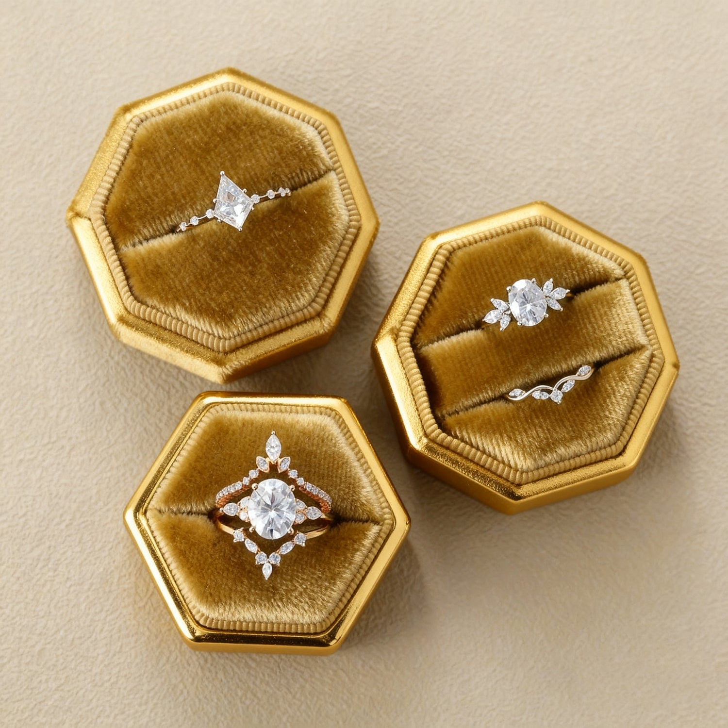 For packaging, we use reusable velvet ring boxes that will protect your ring well during shipping without losing its beauty. We advocate not over-packaging to avoid paper waste. On the outside of the ring box, we only use kraft bubble wrap to minimize shock during shipping, which in our experience is more than enough.
