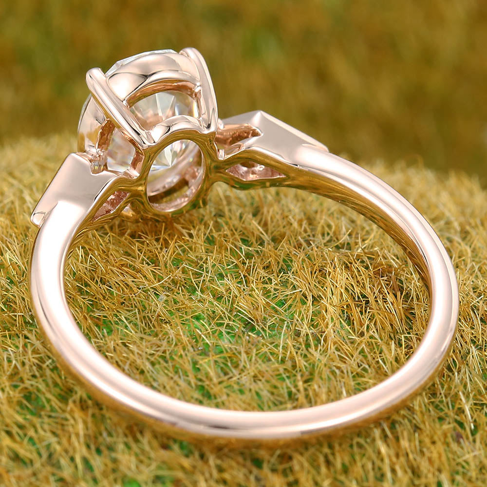 1.3CT Oval Cut Moissanite Engagement Ring with Bezel Kite Accent Stones