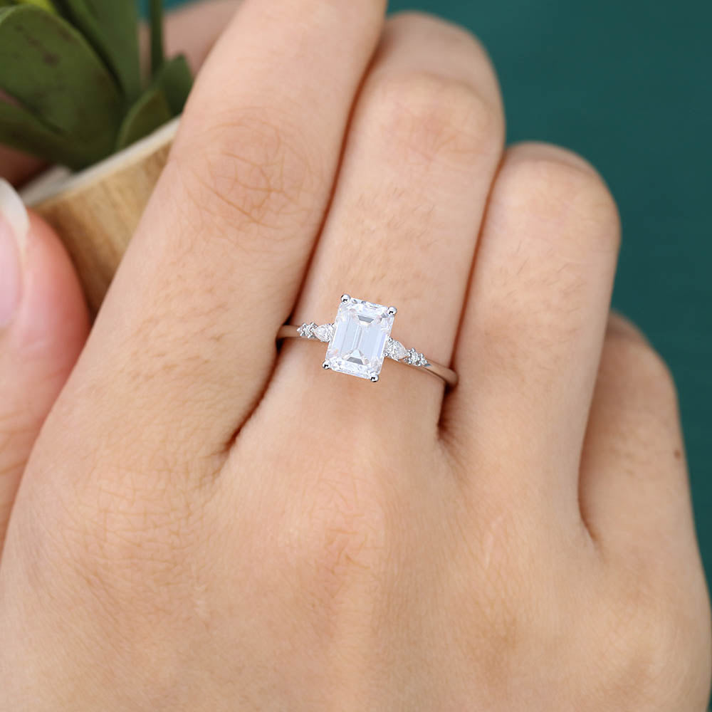 1.5CT Emerald Cut Moissanite Engagement Ring with Pear Accents
