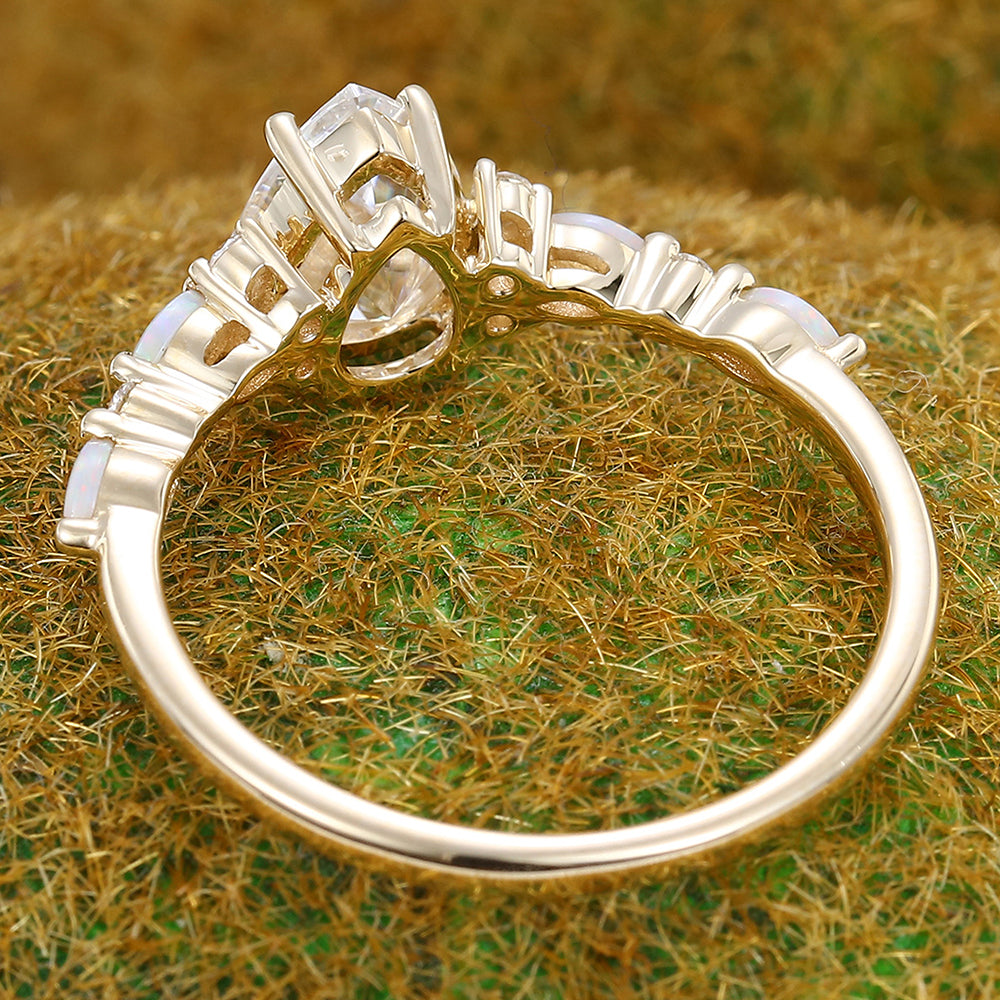 1CT Pear Shaped Moissanite Engagement Ring with Opal & Moissanite Accents