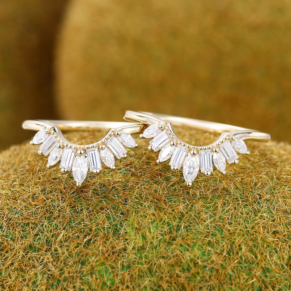 Art Deco Moissanite Wedding Ring Set 2PCS Curved Wedding Band