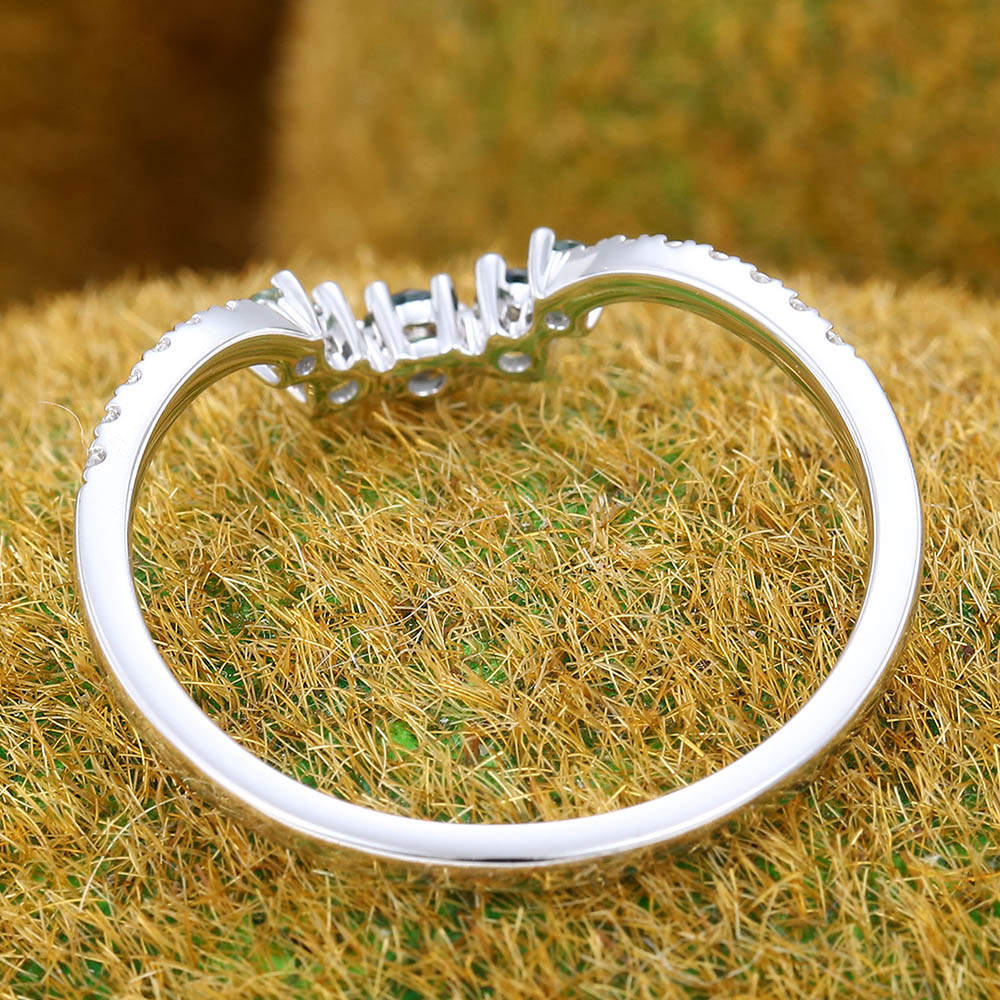 Cluster Green Blue Sapphire & Pavé Moissanite Curved Wedding Band