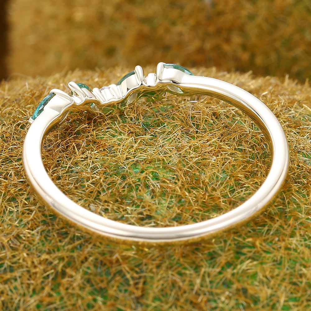 Curved Band Marquise Emerald & Diamond Wedding Band Anniversary Ring