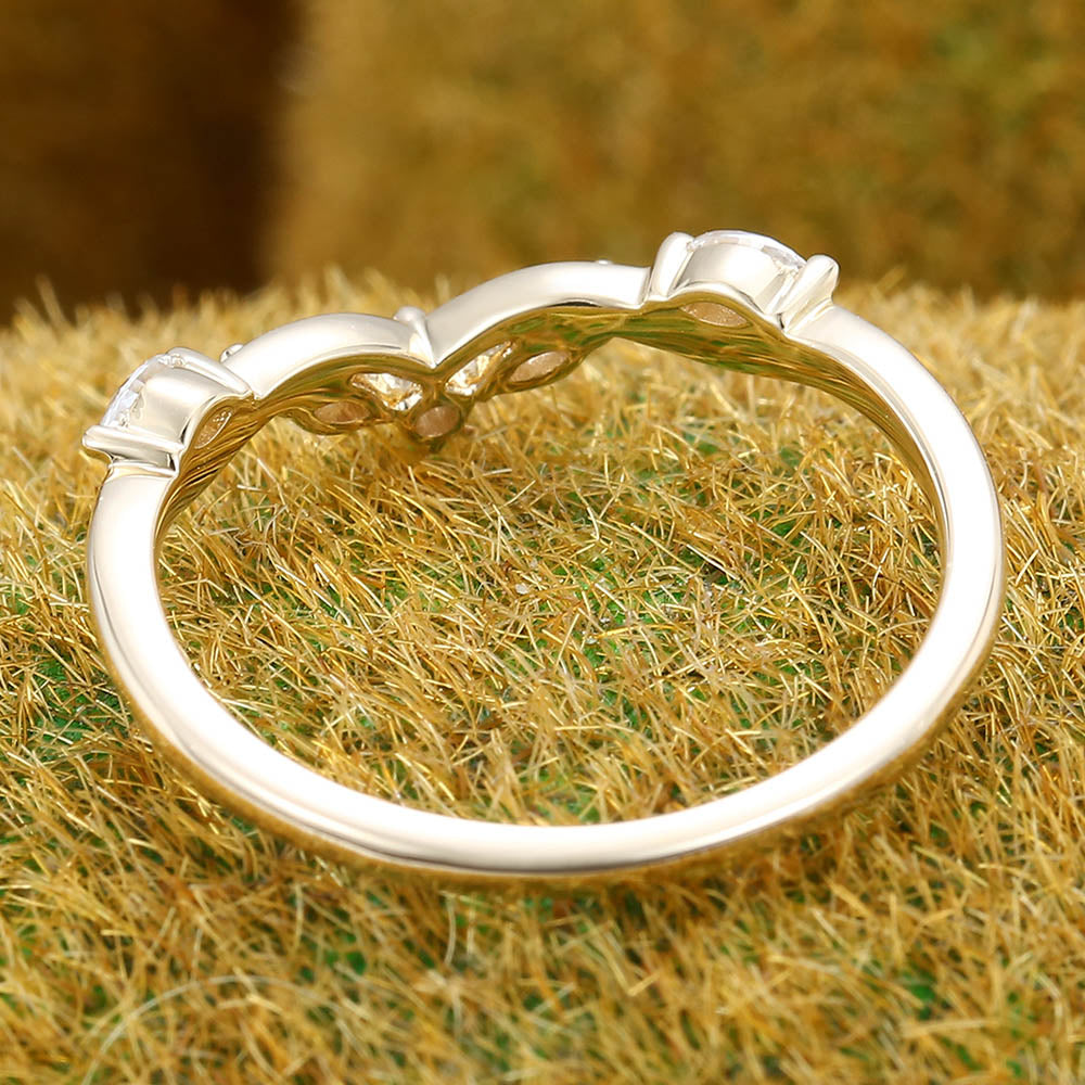 Filigree Marquise & Round Moissanite Curved Wedding Band Bridal Stacking Ring
