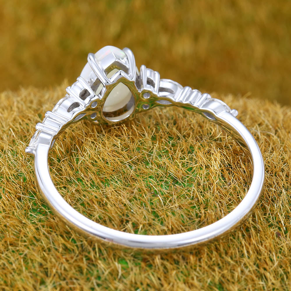 Four-Claw Prong Pear Shaped Opal Engagement Ring with Moissanite Cluster Accents