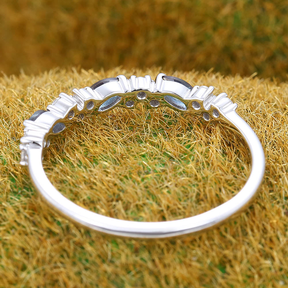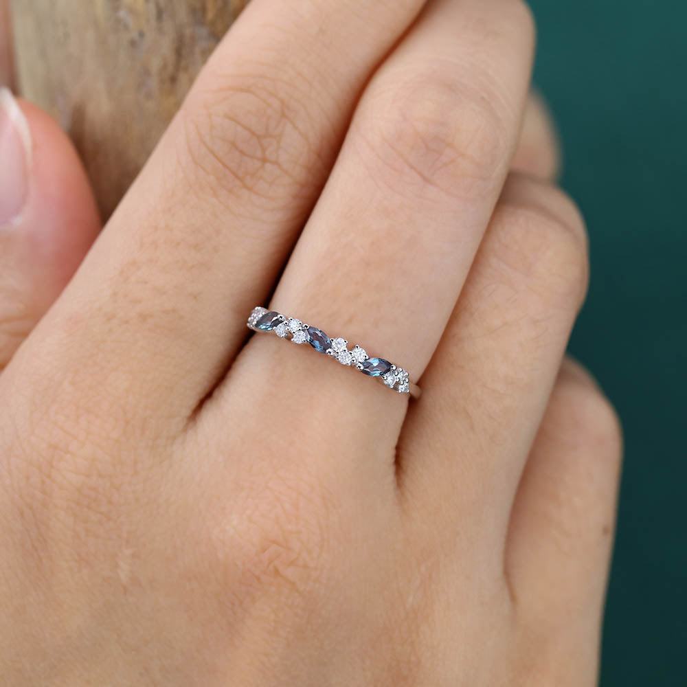 Marquise Alexandrite & Round Moissanite Wedding Band Anniversary Ring