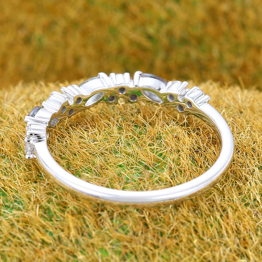 Marquise Aquamarine & Alexandrite Wedding Band with Petite Moissanite Accents