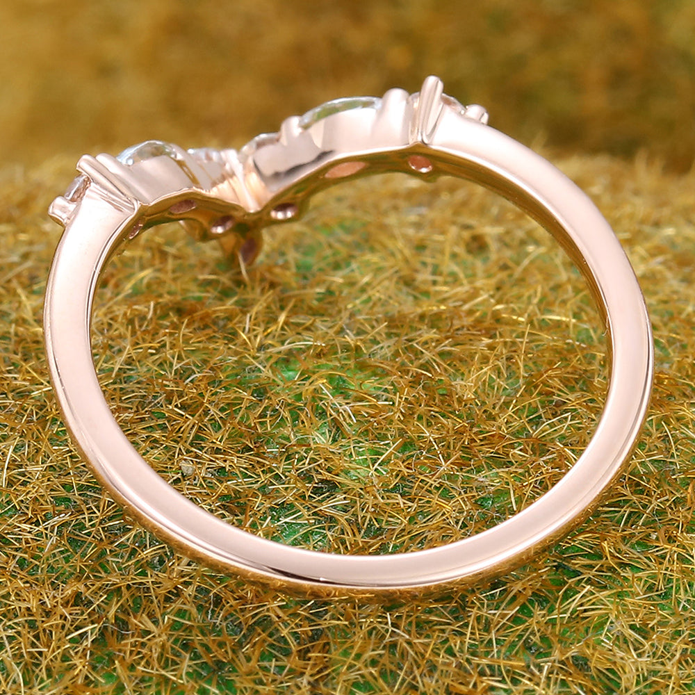 Marquise White Sapphire & Round Moissanite Curved Wedding Band