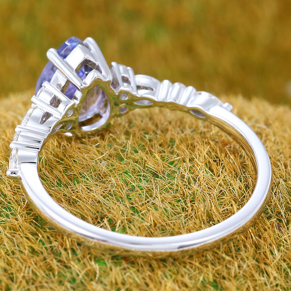 1CT Pear Cut Tanzanite Engagement Ring with Marquise & Round Cluster