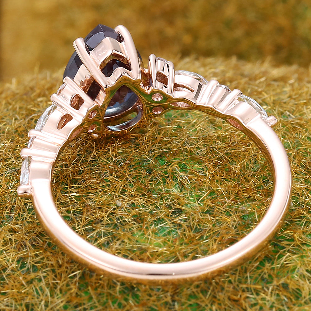 Pear Shape Alexandrite Engagement Ring with Moissanite Cluster Accents