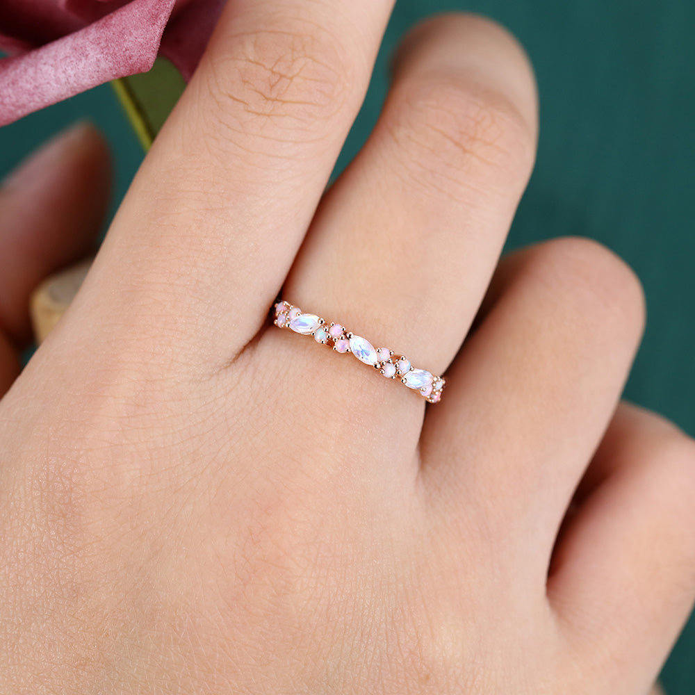 Petite Moonstone & Opal Wedding Band Anniversary Ring
