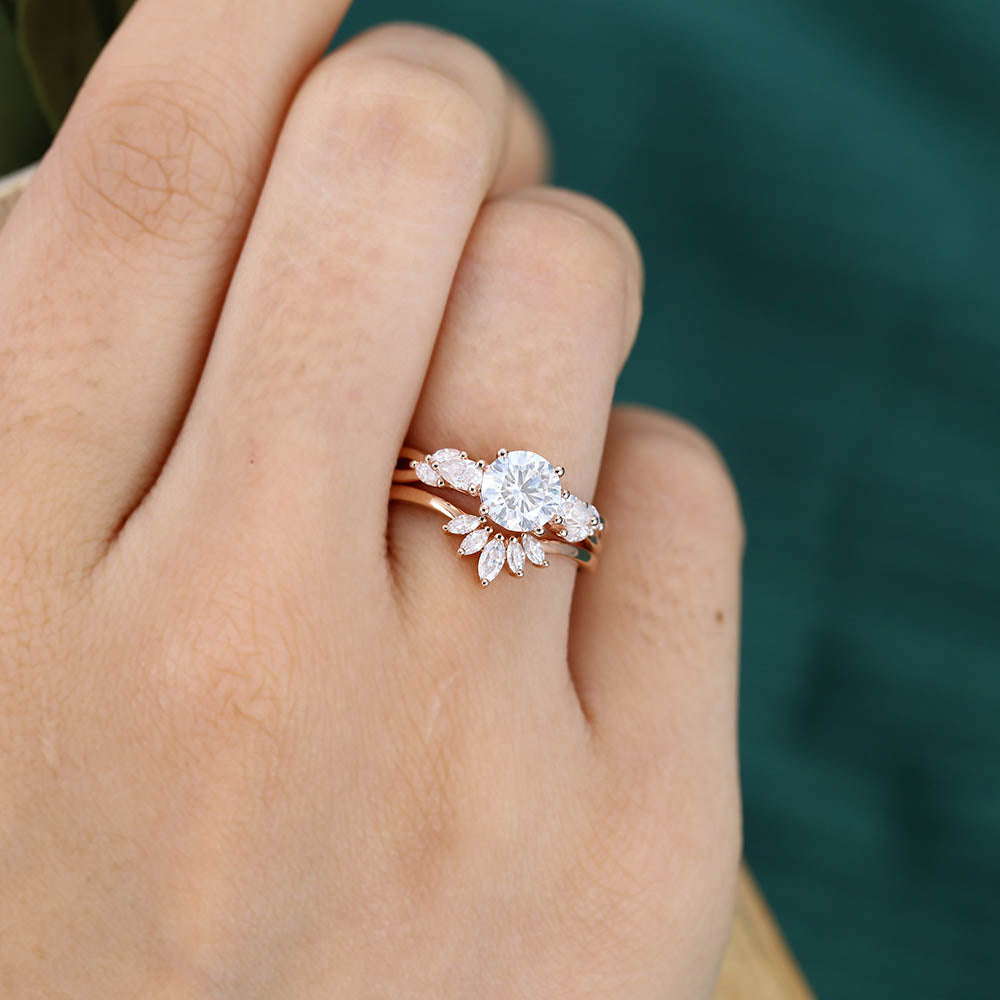 Twisted Design 1CT Round Cut Moissanite Engagement Ring Set with Marquise Cluster Accents